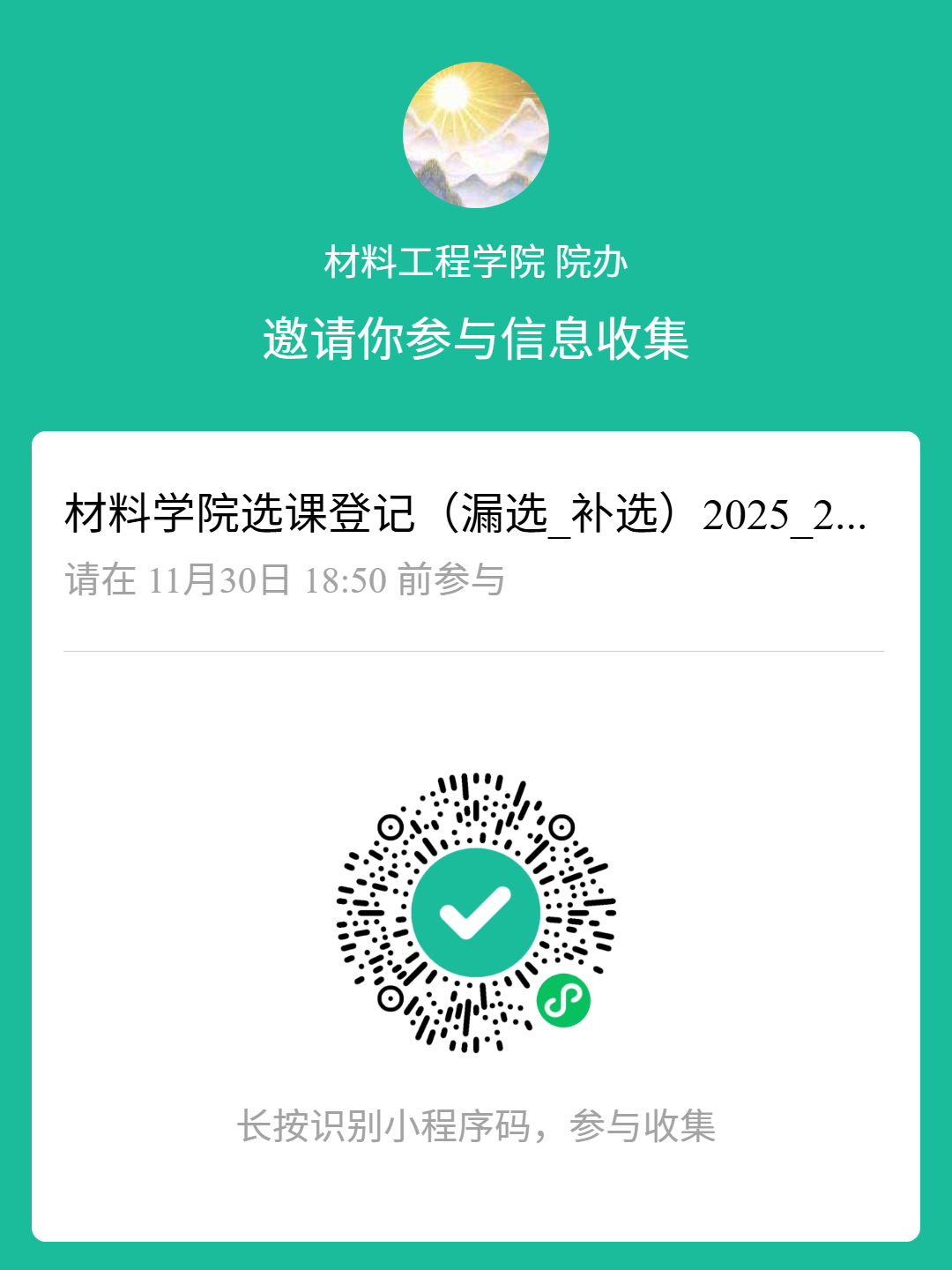(3)扫描“选课登记”专用二维码,在线填写有关信息,拍照上传盖好章的《选课(退课)登记表》;