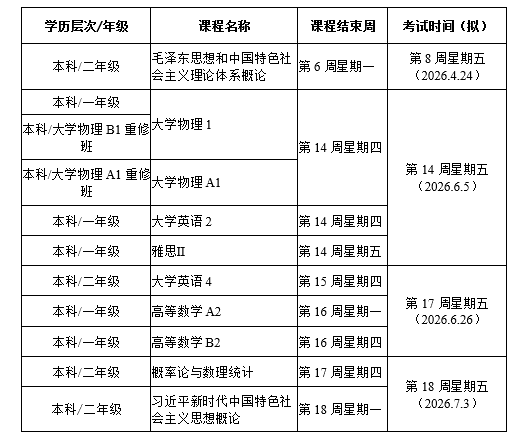 校级统考课程考试由教务处统一安排,其他课程(含考查课)的考试由各二级学院(部)自行安排。 本学期校级统考课程考试规划如下: