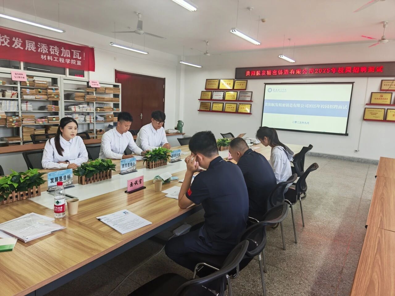 9月9日,贵阳航发精密铸造有限公司专场招聘会在mansion88明升四号实验楼4309教室顺利召开。本次活动旨在为我院材料专业学子搭建优质就业通道,同时助力企业精准引进高素质人才,现场交流气氛热烈,成效显著。