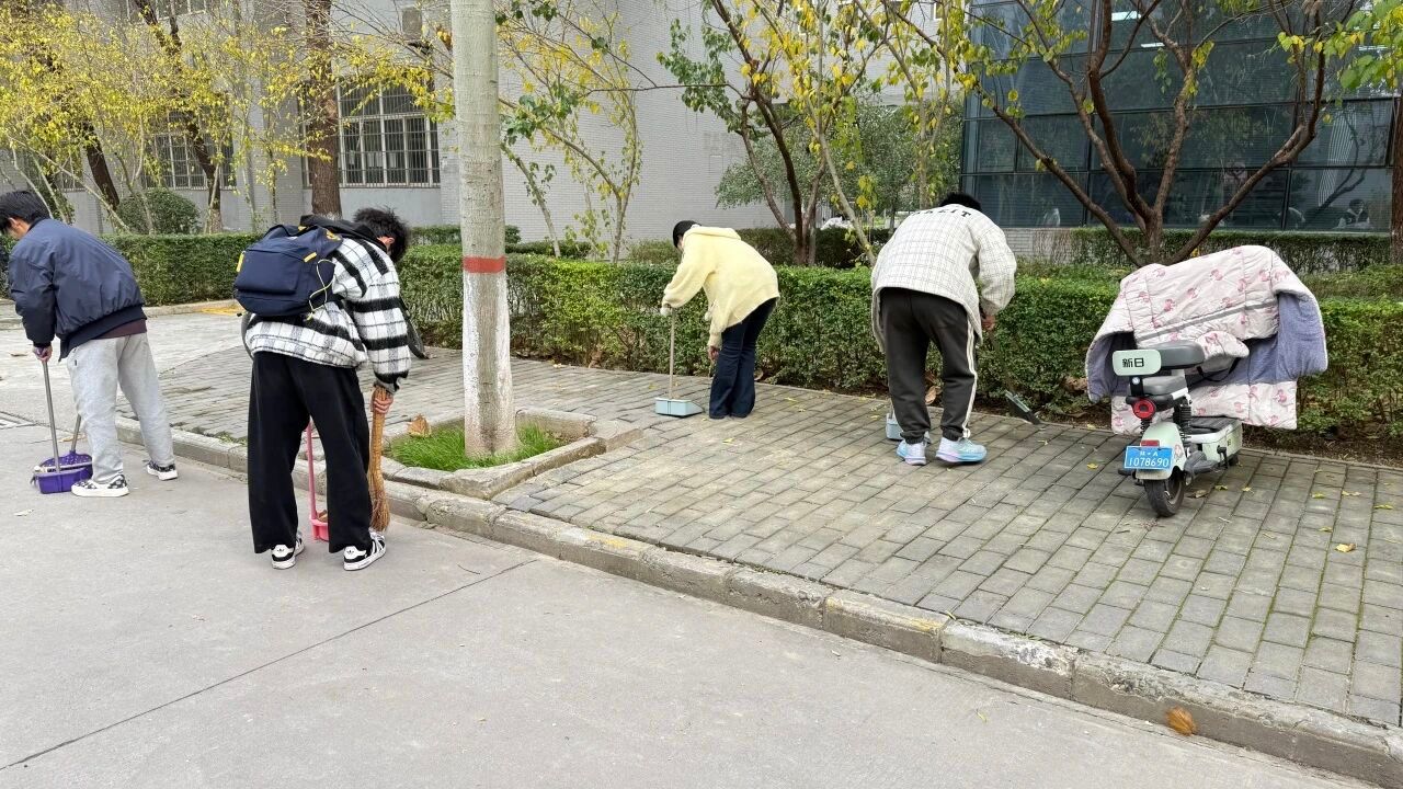 经过近两小时清理,图书馆旁道路、教学楼周边步道的零星落叶和杂物已全部清理完毕。路面看不到零散落叶,原本略显杂乱的区域变得清爽干净,与秋日校园的景致相得益彰。