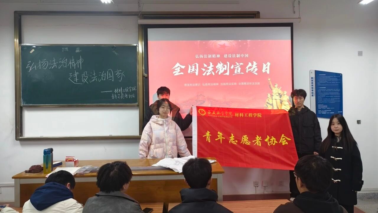 为普及法律知识,弘扬法治精神,我院青年志愿者协会于12月4日,在四号实验楼4307教室进行了“弘扬法治精神,建设法治中国”法治宣讲活动。